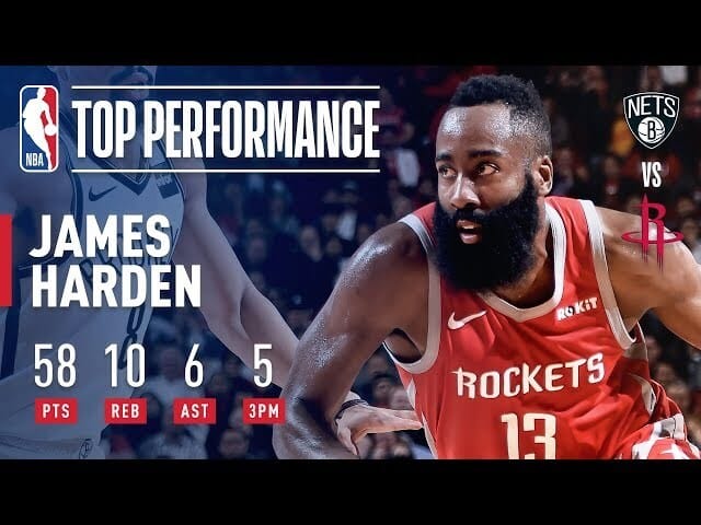 James Harden (HOU) became the first player since Wilt Chamberlain (1962) to score 55+ points in two straight games! He put up 58 in an OT loss to the Brooklyn Nets. This was also his 18th straight 30-point game!